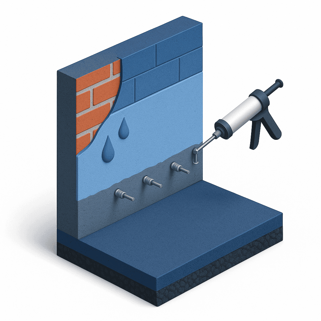 Wenn eine Außenabdichtung nicht möglich ist, können wir Ihren Keller von innen abdichten. Mit modernen Dichtungssystemen, Injektionsverfahren und Sperrputzen stoppen wir die Feuchtigkeit direkt an der Wand. So lässt sich eine feuchte Kellerwand sanieren und der Keller trockenlegen von innen, ohne das Erdreich freizulegen. Ideal, um Kellerwände von innen abzudichten und nachhaltig vor Nässe zu schützen.